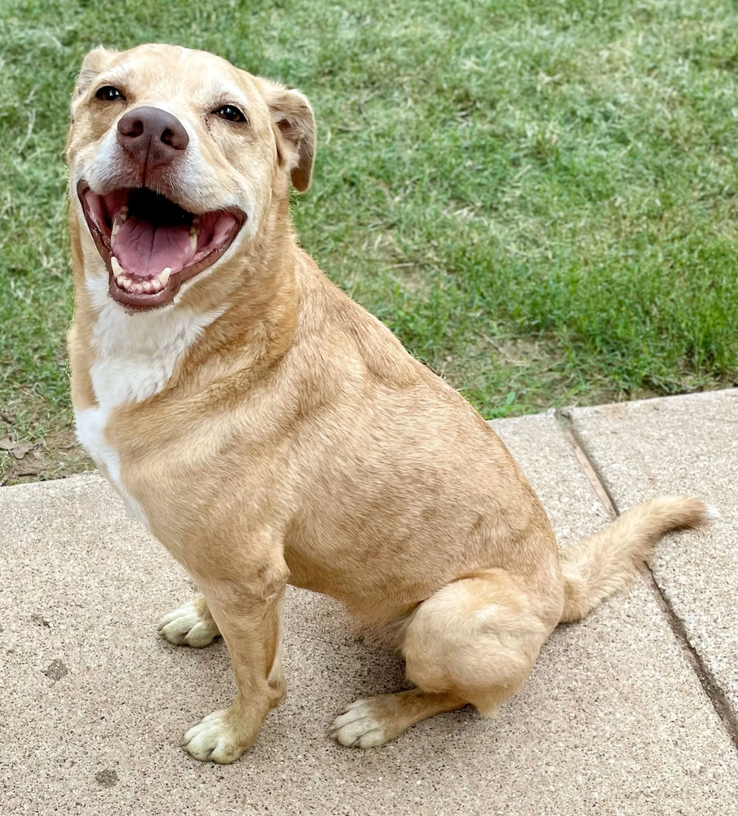 Texas Independent Rhodesian Ridgeback Rescue would like to share a few stories over the next few weeks about our senior dogs. At the present time we have ten dogs that are ten years of age or older. In all honesty most of those that are over ten years old and have been here for most of their lives, think this is their permanent home and more than likely it is. For those that are 11-14 years old, dependent upon their health, they are living their best life here and we are happy to have offered them sanctuary in a loving peaceful world. We have another 5 that are around 7 or 8 years old AND three of them are looking high and low for their new families. That would be Bella, Copper and Murphy – none of which are Ridgebacks. Copper, Bella and Murphy did not know what a Ridgeback was until they arrived at TIRR Rescue.